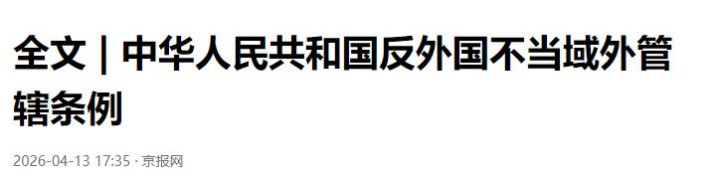 最关键的是,4月13日《反异邦不当域外统治条例》持重见效,为反制提供了坚实法律依据。中方整个举动都有法可依。