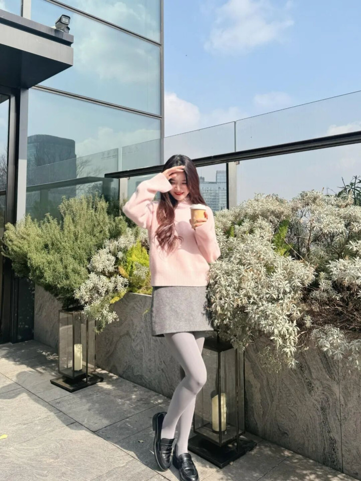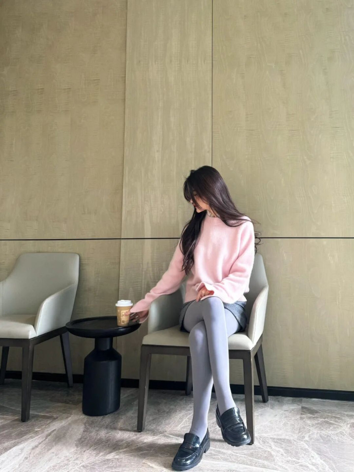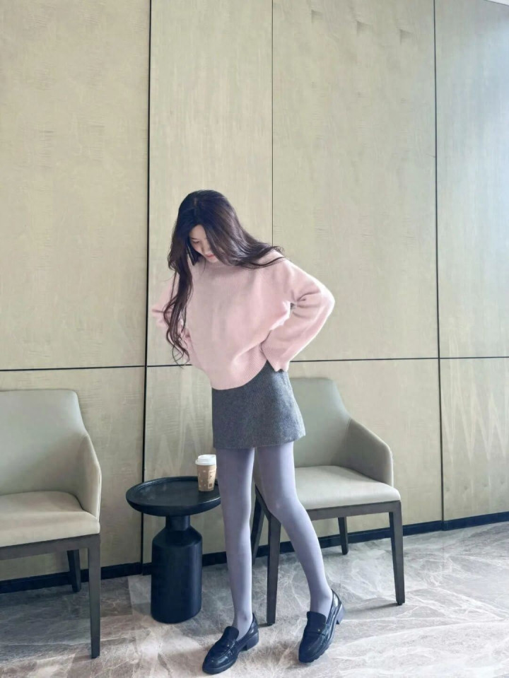 百家乐app 粉毛衣 + 厚灰袜, 温柔减龄的松弛感