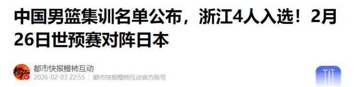 都市快报橙柿互动——中国男篮集训名单公布,浙江4人入选!2月26日世预赛对阵日本