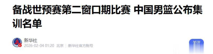 2026年2月3日晚上10点,中国篮协掐着点公布了新一期男篮集训的21人大名单。