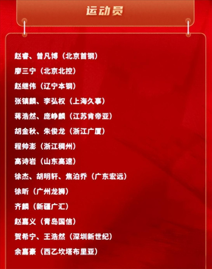 老面孔赵睿、赵继伟还在,徐杰也入选。