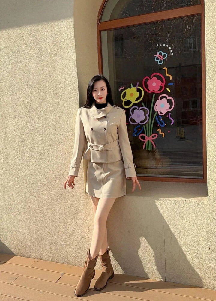 > ag百家乐app 短款风衣套装太会了, 一秒三七分比例, 配短靴冬日氛围感直接拉满