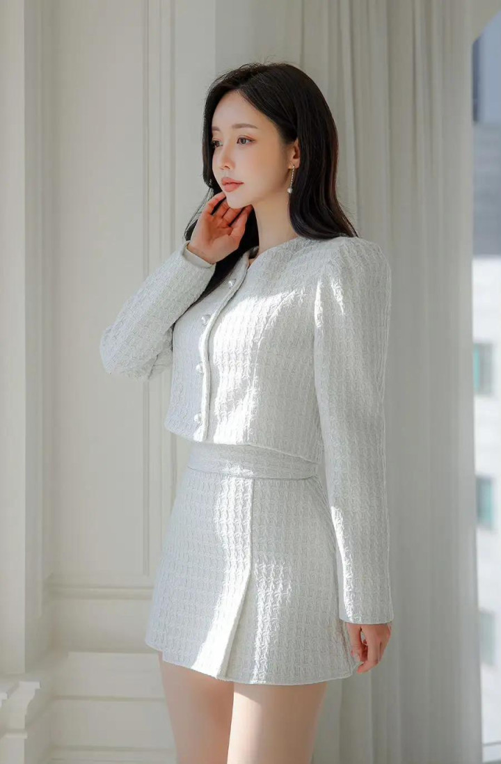 ag百家乐app 银白小香轻熟套装|是柔光里的月光名媛美人