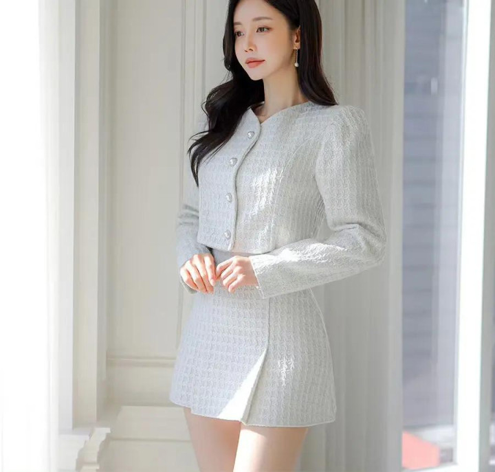 > ag百家乐app 银白小香轻熟套装|是柔光里的月光名媛美人
