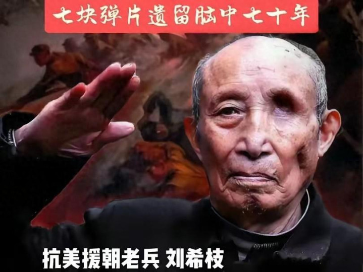 那时候的医疗条件多差啊,受这么重的伤,很多人都觉得他肯定活不成了。可刘希枝的意志力太顽强了,硬是挺了过来,不过他的左眼彻底失明了,那七块弹片也因为当时的医疗水平有限,永远留在了他的颅骨里,成了这场战争给他留下的一辈子都抹不去的印记。