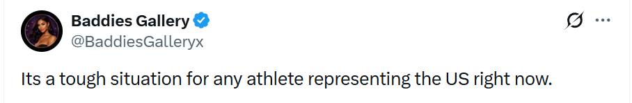 这一事件在社交媒体上引发网友争议。有美国网友表示:“对于此刻代表美国参赛的任何运动员来说,处境都很艰难。” ↓