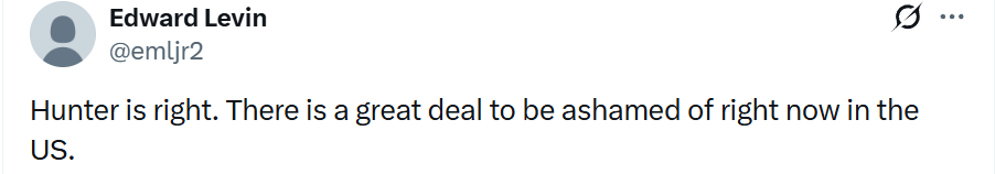 “亨特说得对。当下的美国确实有太多令人羞愧的事情。” ↓
