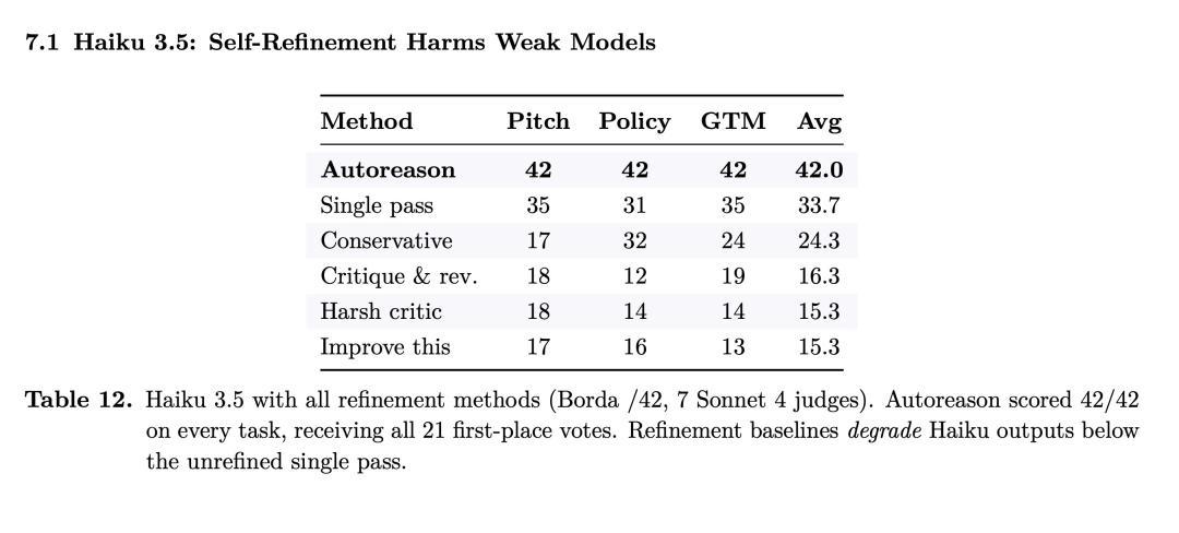 使用Haiku 3.5(资本仅Sonnet的十分之一)相助 Autoreason,产出质地竟与Sonnet 4单次生成持平。