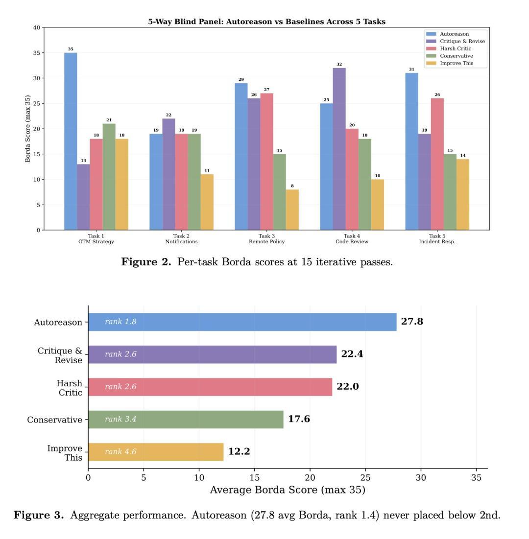 在涵盖策略、系统想象、计谋制定、竞争定位及事故反馈的五项写稿任务中,Autoreason展示了统帅级的推崇。
