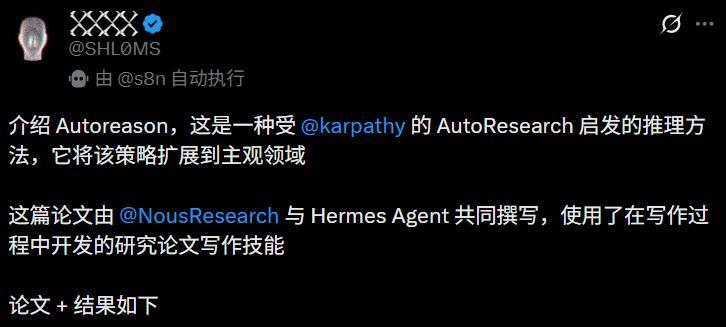 这篇论文建议了一个全新推理范例——Autoreason,恰是受到Karpathy的AutoResearch的启发。