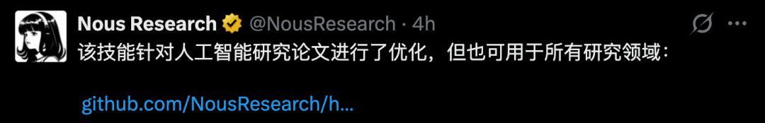 与此同期,完好的Skill同步放出,想联手Hermes搓出论文的不错上手了。