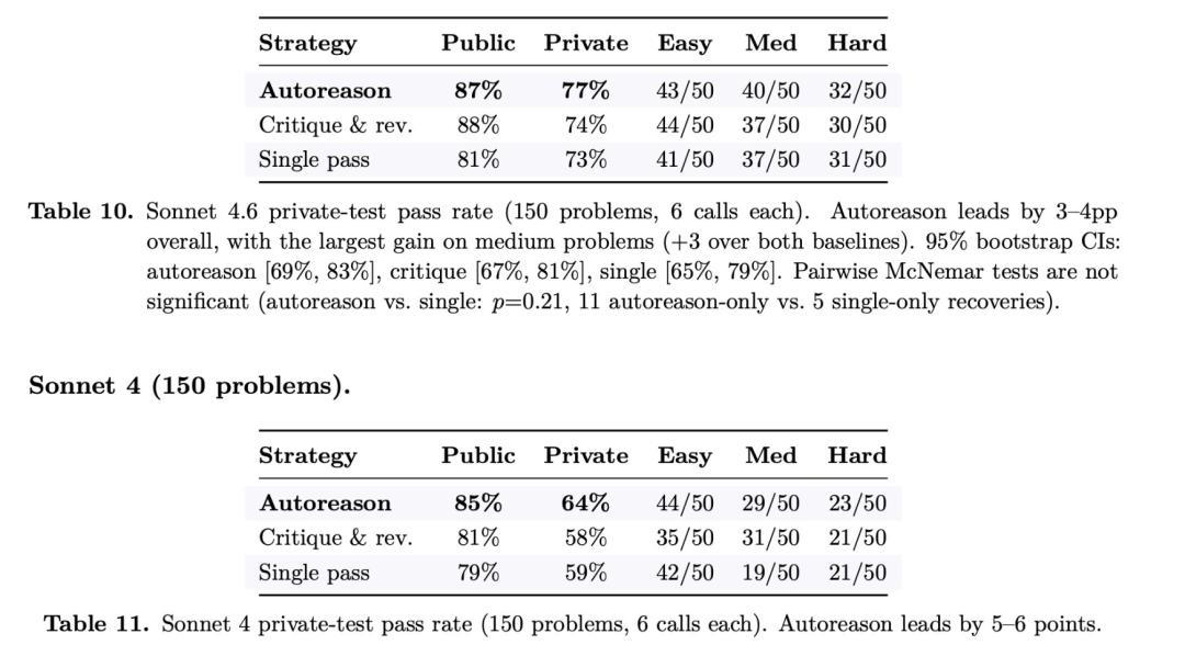 此外,在150个编程困难中,Autoreason的失败规复率达62%,远高于单次生成的43%。