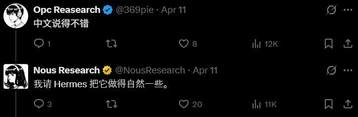 至于中语写得为什么这样顺,Nous我方揭了底,他们请Hermes帮衬润色过。