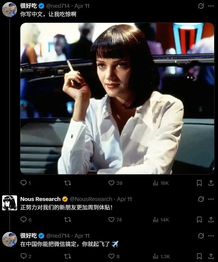 值得拎出来说一句的是,一家硅谷试验室在中语推底下用中语跟中国用户互动,自己就不太常见。