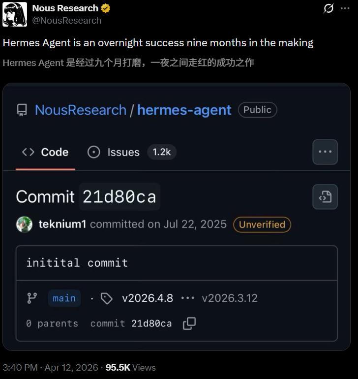 Hermes Agent实火,全然盖过了「龙虾」的热度。
