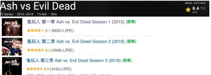 好意思剧版的《鬼玩东说念主》一共出了三季,口碑迥殊可以,现在豆瓣8.1- 8.6分,IMDb 8.4分。